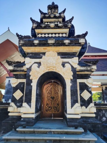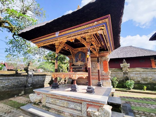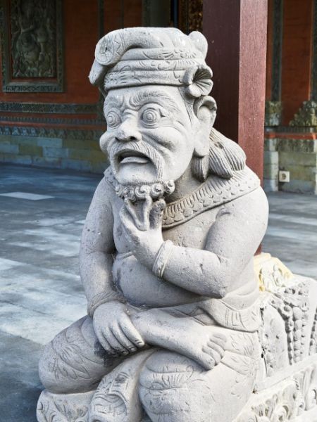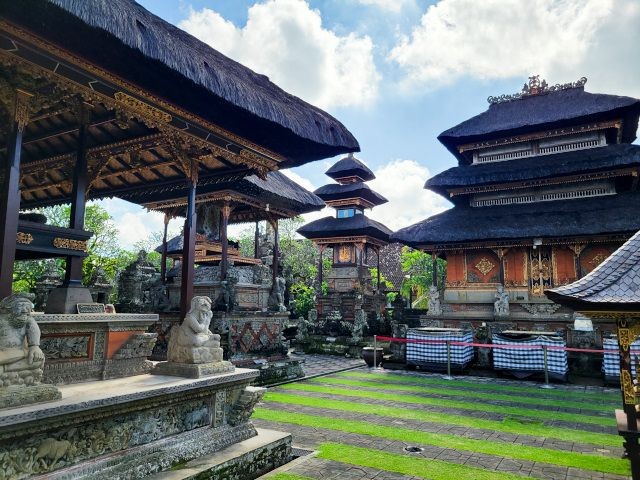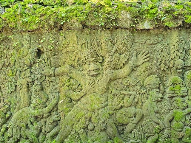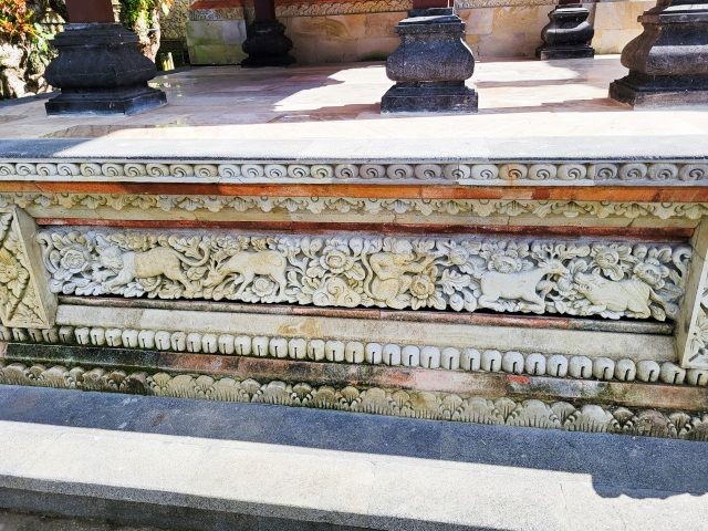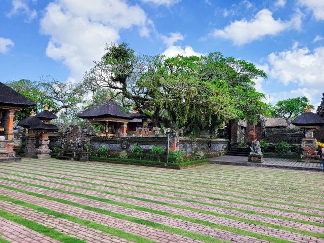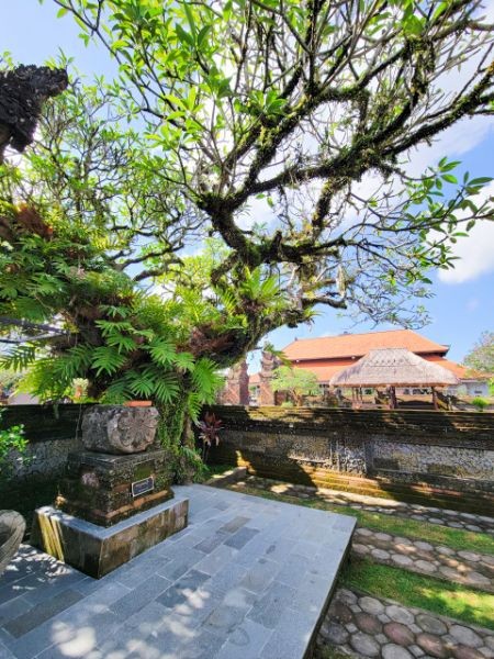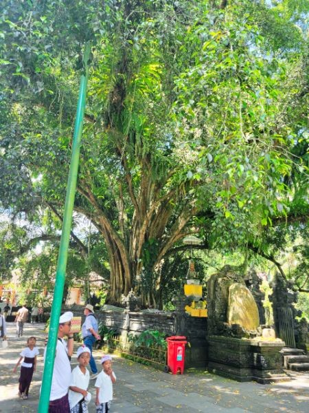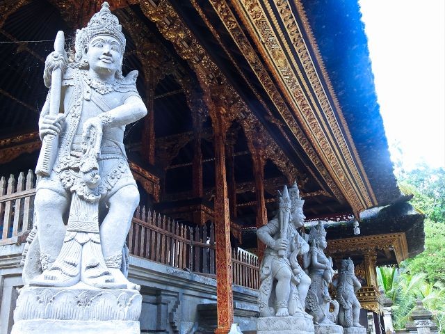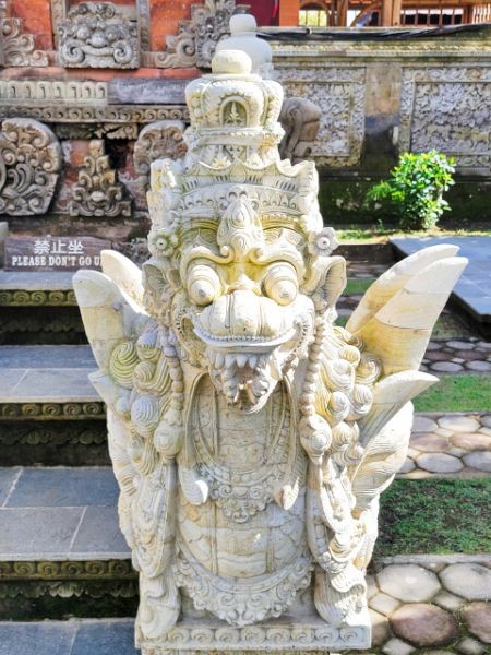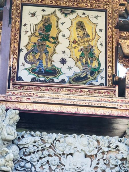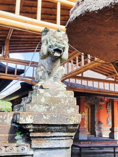 After watching the demonstrations and exploring their shop, we headed to the ancient and holy "Pura Puseh - Pura Desa" village temple in Batuan. They've been able to confirm its existence at least back to 907 C.E. Being a sacred temple, they have some strict standards to show respect. One of these is everyone must wear a sarong. These are provided at the entrance. We marveled at the unique carvings and various monuments in the temple.