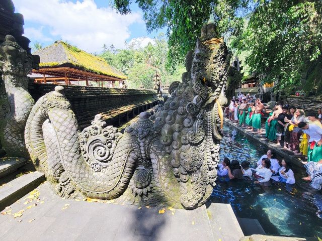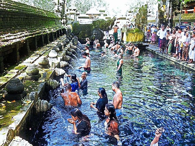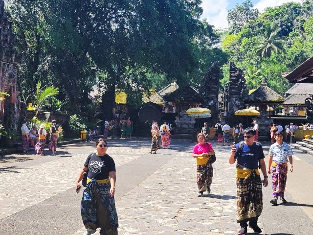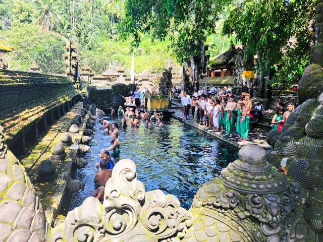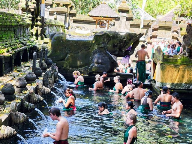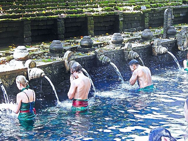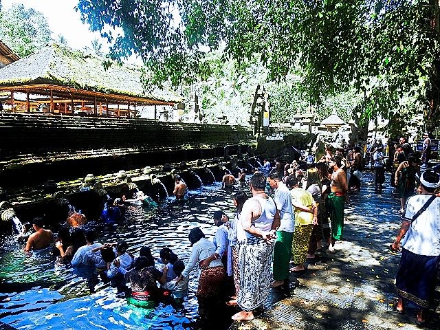 Our final stop for the day was at the Pura Tirta Empul. Pura Tirta Empul is a Hindu Balinese water temple dating back to the 10th century and is one of the holiest in Bali. The temple pond has a spring which gushes fresh water regularly, which Balinese Hindus consider to be holy – Tirta Empul means Holy Spring in Balinese. Again, sarong's were provided for us to wear. The entire temple was very interesting, as was the holy springs. People were lined up for the purification ritual.