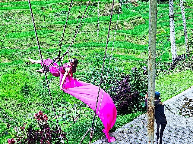 Moving on, we stopped at a popular rice terrace. Here, we were not impressed. It was popular as a tourist attraction because of the variety of "rides" you could pay for. There were large swings where women rented flowing dresses to take a video for "TikToc" and "IG". They also had zip lines and a place to ride a bicycle across a cable.