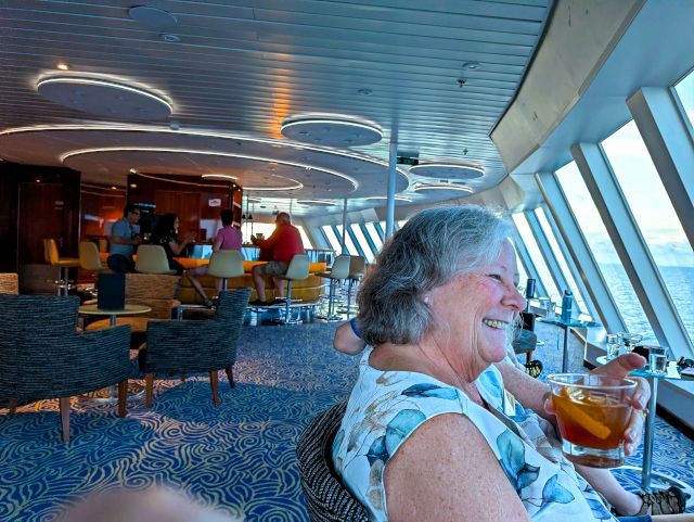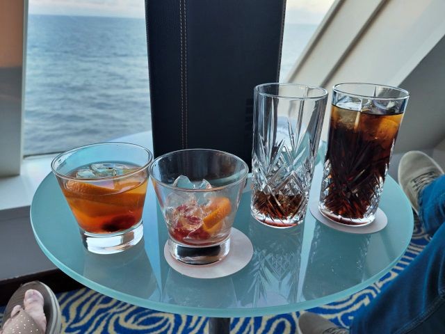 The ship also recently started hosting a "happy hour" in the Observation Lounge. 30% off drinks. We've enjoyed visiting friends here, especially when we can get a 2 Cuba Libre and 2 Old Fashioned drinks for under $11.00! My Rum & Coke drinks are only $2.10 during happy hour.