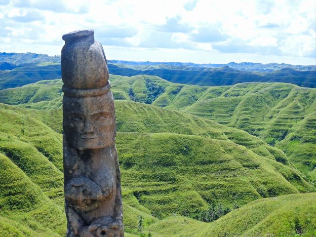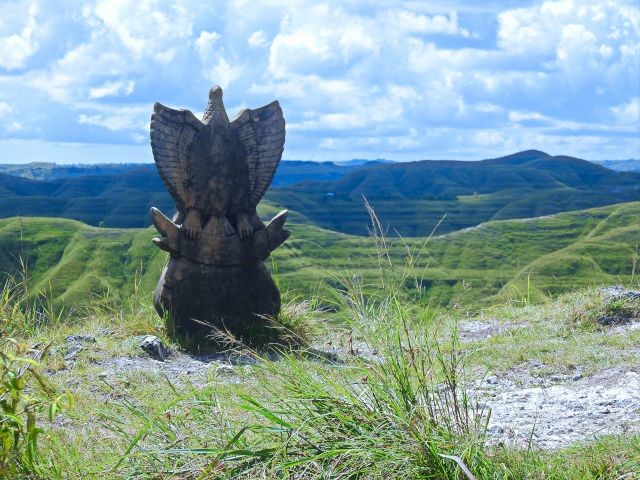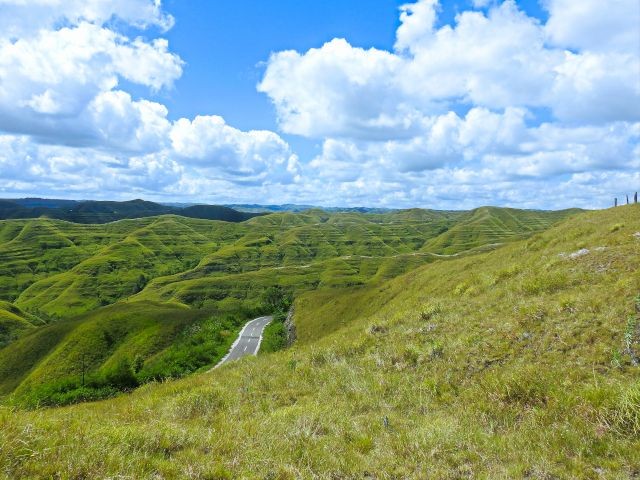 We drove through the village of Waingapu, which was far different than Denpasar in Bali. The buildings and streets weren't ornate or nice looking. This was a pretty rural area. Unfortunately, since we had a language barrier, I'm not sure of the names of the places we went to. Our first stop was at Wairinding Hills, a panoramic overlook. It was a 30-minute drive from the village, giving me a good look at the countryside and rural Indonesia. I paid the 20,000 IDR ($1.20) for the two of us to walk up to see the views.