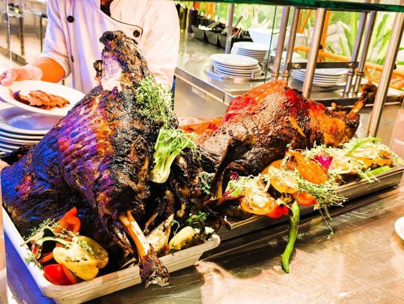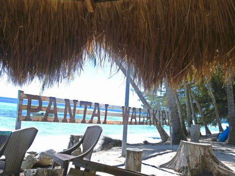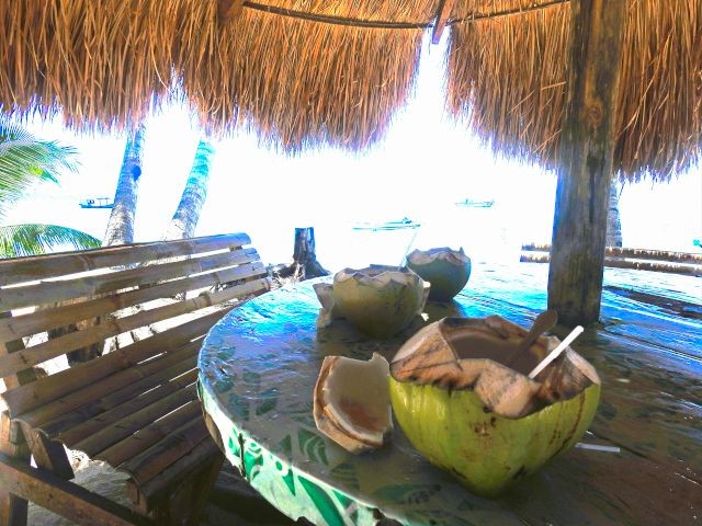 I ran into a few other residents from the ship. They also had a car and driver who didn't speak English. However, they picked him up at the port after we arrived. They paid $190 for the day. We sat under a palapa. For 10,000 IDR (60 cents), I tried fresh coconut water. The locals cut open a coconut and served it to me with a straw and spoon. I was surprised how much water was in there, but I was also disappointed. It was okay but didn't taste like coconut and wasn't sweet like I expected.