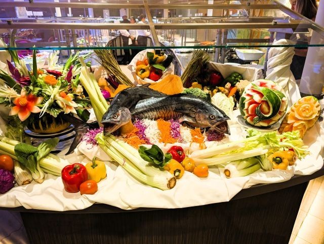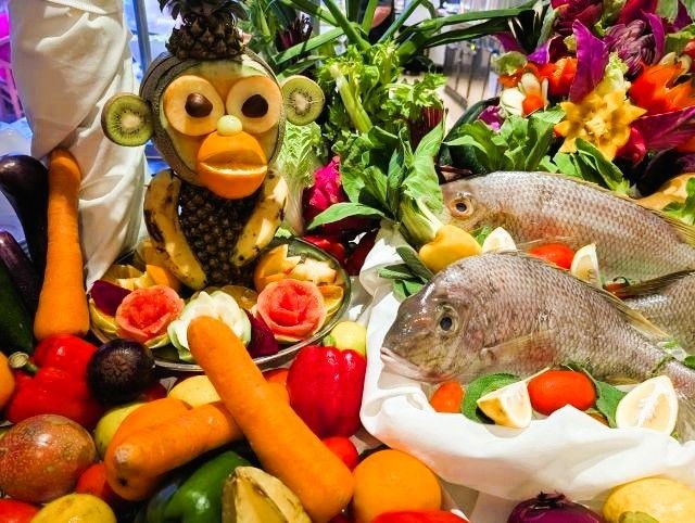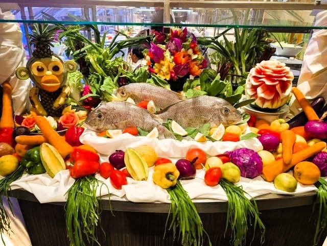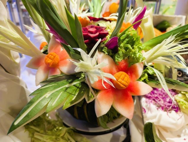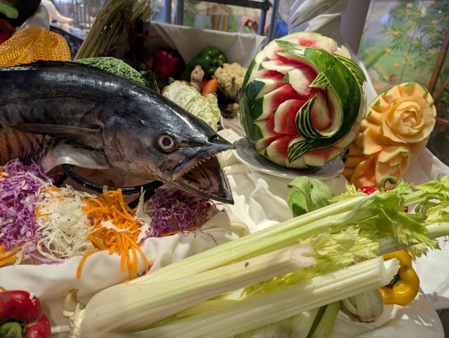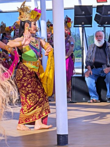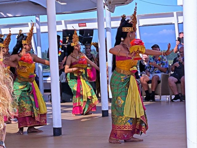 Our chefs on the ship have also been having fun with the abundance of fresh fruit and vegetables we picked up in Bali. The dining menu has been superb, and they've been giving us wonderful displays. A couple of the ports we've stopped at have been very welcoming, providing us with a show of local dances.