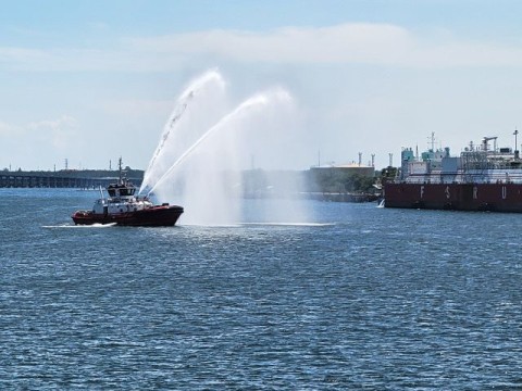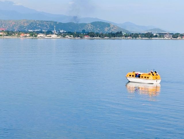 There's not a port large enough for us in Dili, so we're anchored in the bay and are using tenders (lifeboats) to shuttle residents back and forth to the shore.