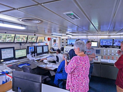 On a couple of the sea days, the ship gave tours of the Bridge and the Engine Control Room. We weren't allowed to take photos of the bridge, but I did get some of the engine control room. Both tours were very interesting and woke me up to the details of what goes into operating the ship. Our crew of about 200 people do a wonderful job. The engine control staff is 39 people working 3 shifts around the clock. They take care of the 4 engines, 4 generators, water desalination and purification systems, the waste systems, and anything else mechanical.