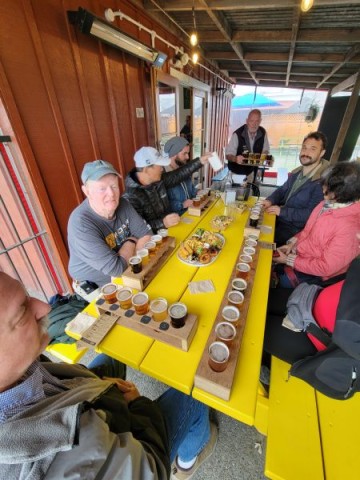 Perhaps it was all of the beer and wine we had already tasted, but we don't remember the name of the second winery, and we only got one photo of our table. I remember we had 8 tastings, and the wine was also good there. Especially the dessert wine with some chocolate. By now we were really enjoying our tasting tour.