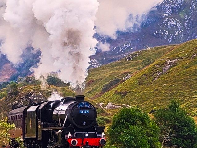 Our full first day we spent visiting the Glenfinnan Viaduct and getting photos and videos of the Jackobite Train, a.k.a. the Harry Potter Hogwarts Train. When we first arrived, all of the parking areas were full. We drove ahead and found a place to watch the train pass by close-up. We returned to the viaduct to explore the visitor center and decided to have lunch, then wait for the train to pass by on the viaduct. We got some good photos and videos.
