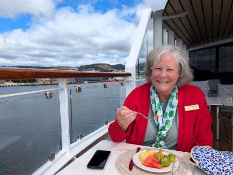 The Villa Vie Residences Chief Executive Office, Kathy Villalba, boarded the Odyssey in Melbourne. After leaving Melbourne, we're traveling slowly again to Adelaide, Australia. Yesterday, Kathy held a "Tea Time" for all residents onboard. She gave a wonderful briefing about various operational issues and plans for the future. She had conducted a survey of residents to learn more about our concerns and suggestions. Many of these ideas were discussed. I'm impressed with the Villa Vie management team and respect the issues they face daily. I only see things constantly improving as we continue to move forward.