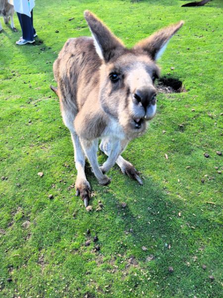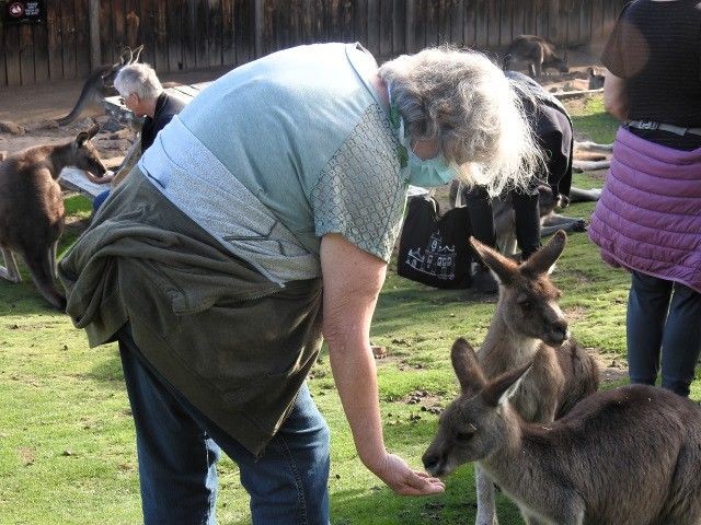 We joined about 90 other residents to visit the Bonorong Wildlife Sanctuary outside of Hobart. The organizer also booked a couple large buses to get us all there. This was a private tour just for our group. We had a wonderful time at the sanctuary. We hand fed and petted several kangaroos, got close-up views of a Tasmanian devil, an Echidna, a Wombat, and several other unique Australian animals. They operate an animal hospital for rescued injured animals. Over 85% of the animals brought in are healed and released back to the wild. This was a full-day event that we won't forget about.