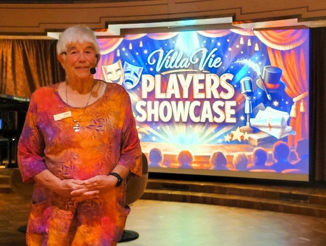 Residents also organize their own shows and skits. Judy, our longtime RV friend who also lives onboard, is greatly involved with the Villa Vie Players.